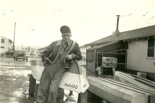 He worked on B-24s, B-25s, B-17s C-54s C-47s,P-38s and P-47s according to his “separation” record in late 1945.. The man shown in the other photograph leaning against a boat was among Uncle Bill’s photos with “Old Boy Shue” written on the bottom. I thought someone might recognize him as their relative.